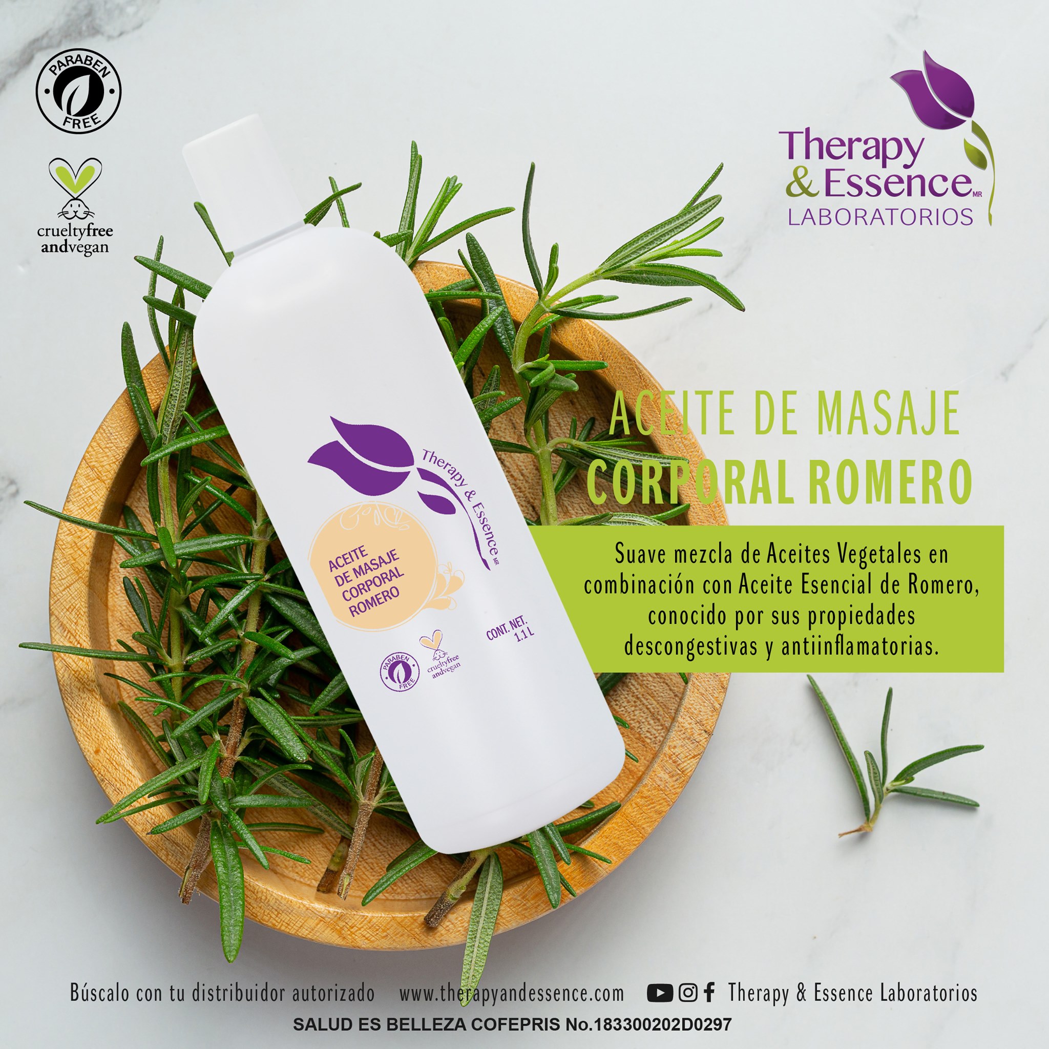 Aceite Corporal de masaje de Romero 1.1lt Therapy and Essence